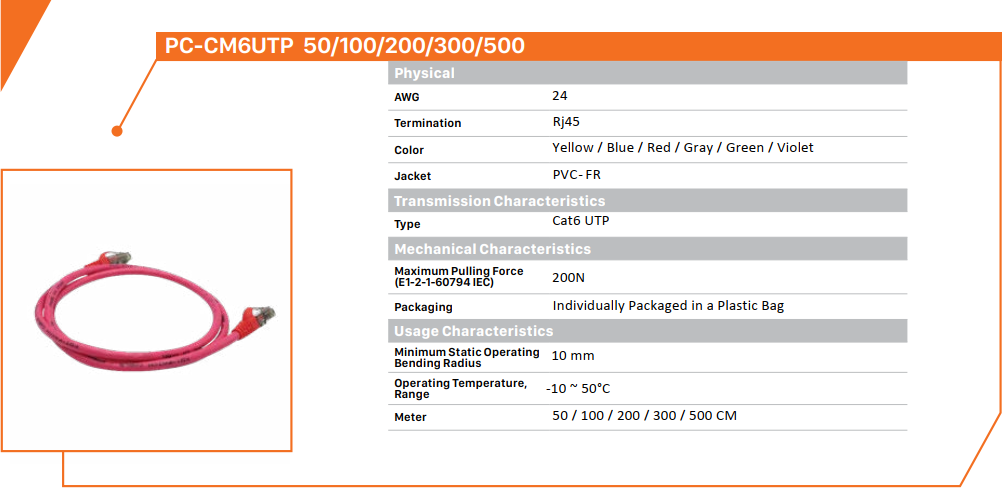 KDT 500cm CAT6 UTP Patch Cord Cable Model PC-500CM6UTP